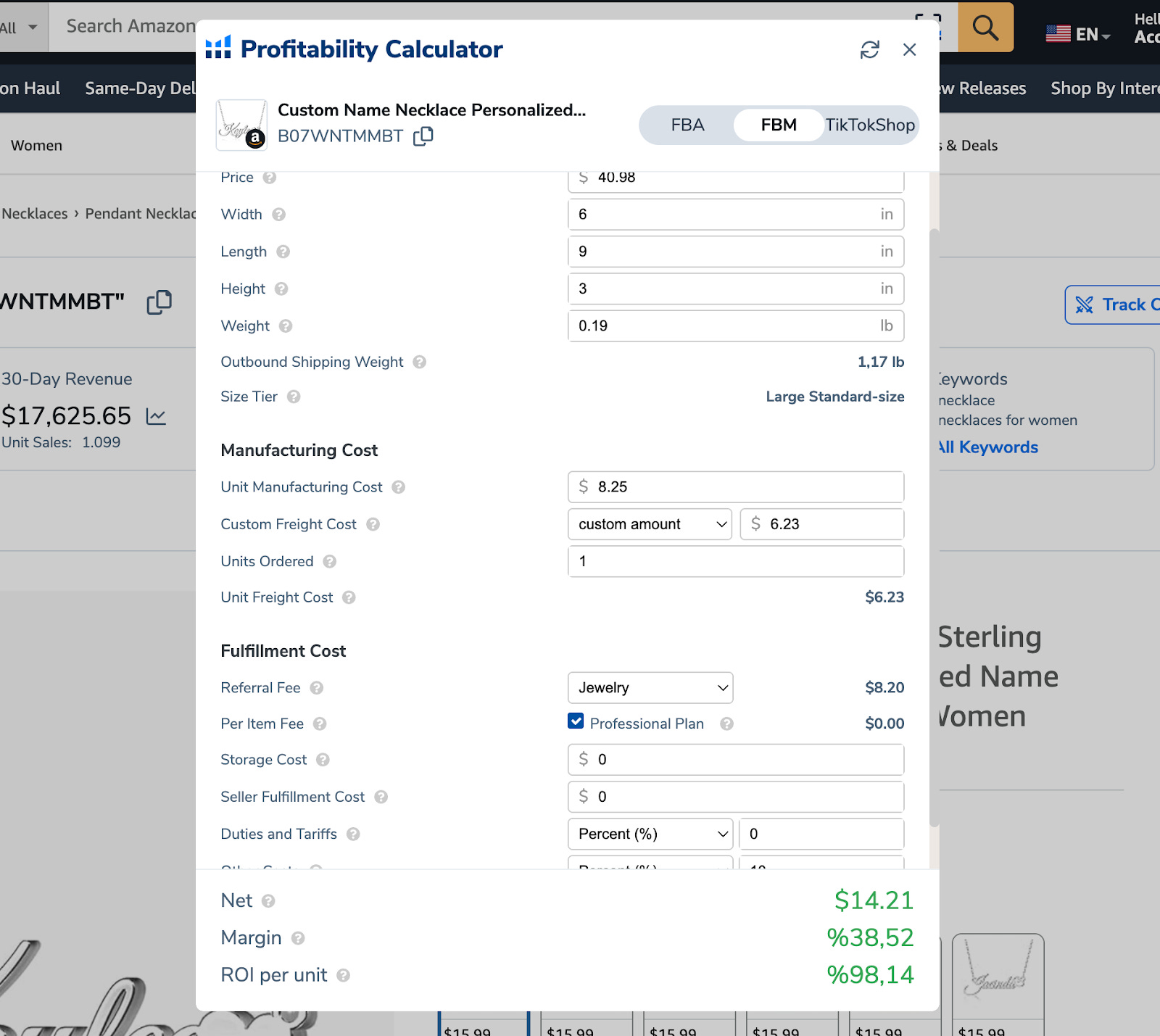 Bu satıcı son 30 günde 1437 ürün satarak $60.717 (2.299.279₺) ciro yapmış. Tam olarak ne kadar harcama yaptığını (ürün + kargo + reklam) bilemeyiz tabii ki ama ürünleri Rexven’den alıyor olarak hesapladığımızda ve %10 reklam harcaması ile tahminen son 30 günde $20.161 (763.472₺) net kâr elde etmiş.